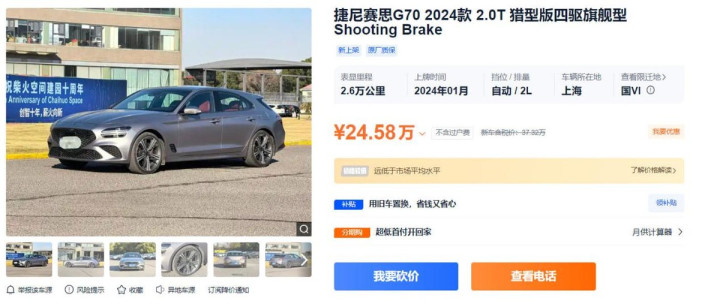 不过,对于咱们特别喜欢捷尼赛思G70这款车型的消费者来说,现在也还是可以去选择它的二手车。据我们了解,目前2024款的G70猎装四驱旗舰型Shooting Brake,公里数在3万以内的车款, 售价只需要24万多就能够买到手了。